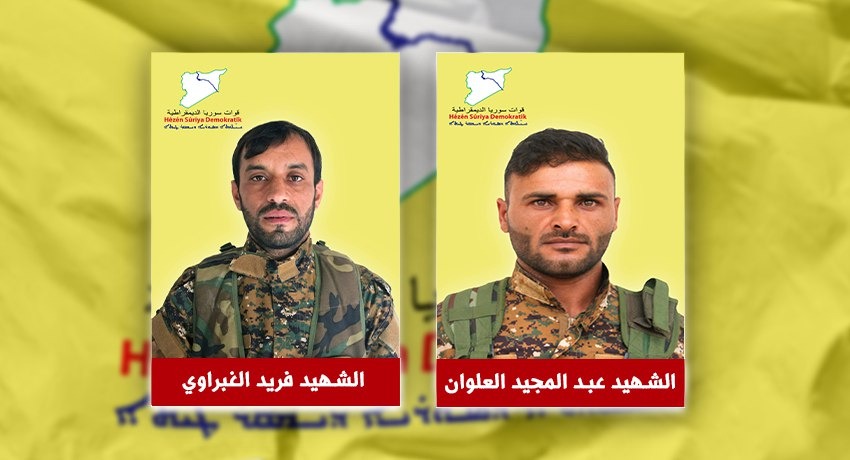 ❑ مرکز رسانه و مطبوعات نیروهای سوریهٔ دمکراتیک/هسد در بیانیهای خبر شهادت دو تن از مبارزانش با نامهای رائد حسکه و فرید الغبراوی که در مکانهای مختلف در ۳۱ جولای به شهادت رسیدند را اعلام کرد.