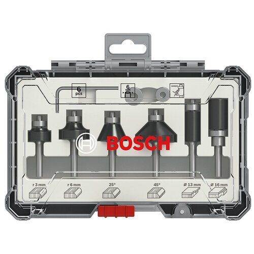 Jeu de fraises pour couper et finir les bords avec une tige de 6 mm. Coupes précises et douces : fraises droites de 12, 16 et 20 mm avec trois fraises en carbure. Coupes très profondes : les fraises droites de 12, 16 et 20 mm offrent des profondeurs de coupe allant jusqu'à 30 mm.