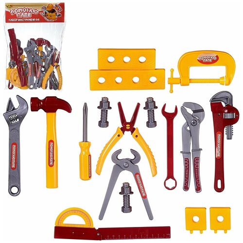 Les jouets de la série « Helping Dad » sont un élément nécessaire dans le coffret de jeu de chaque garçon. Les jouets enseigneront à votre enfant les compétences de base pour travailler avec des outils dès son plus jeune âge. L'ensemble contient 12 articles : marteau, clé à tube, coupe-fil, clé à molette, clé, pince, clé polygonale, niveau, support en forme de U, tournevis, 3 boulons avec écrous, plaques de recouvrement avec trous. De plus : Pour les enfants de plus de 3 ans Dimensions de l'emballage : 20x20x5 cm Poids 220 g Aucune pile requise pour le fonctionnement.Les jouets de la série « Helping Dad » sont un élément nécessaire dans le coffret de jeu de chaque garçon. Les jouets enseigneront à votre enfant les compétences de base pour travailler avec des outils dès son plus jeune âge. L'ensemble contient 12 articles : marteau, clé à tube, coupe-fil, clé à molette, clé, pinces, clé polygonale, niveau, support en U, tournevis, 3 boulons avec écrous, patins avec trous.En plus : Pour les enfants à partir de 3 ans. emballage : 20x20x5 cm. Poids 220 g Aucune pile nécessaire pour le fonctionnement.