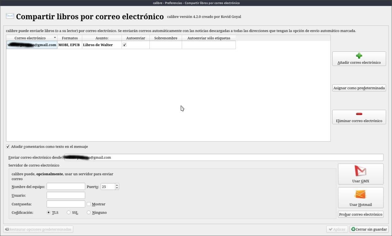 Enviar libro por correo con Calibre