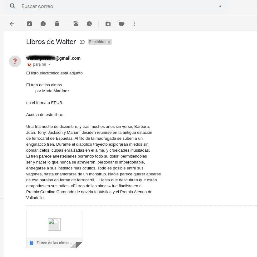 Así se ve el correo enviado desde Calibre a nuestro correo. Para poder hacer esto debe estar activado el SERVIDOR de contenido.