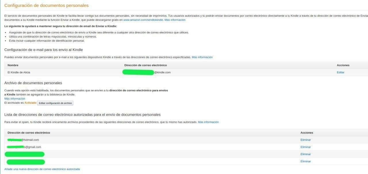 Si quisiéramos enviarlo a nuestro Kindle, lo primero que tenemos que hacer es ir a nuestra cuenta de Amazon y agregar la cuanta de correo desde la cual el kindle podrá recibir correos.