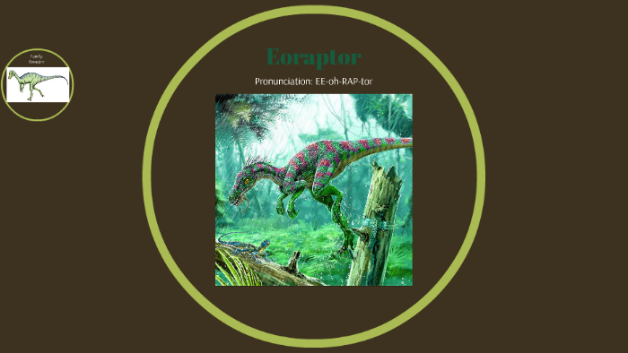 Eoraptor, pronounced "EE-oh-RAP-tor, was one of the earliest known dinosaurs . It's name comes from the Greek, meaning "Dawn plunderer" . It lived in the Triassic period, about 228 million years ago . Eoraptor lived in what is today the northwestern region of South America .