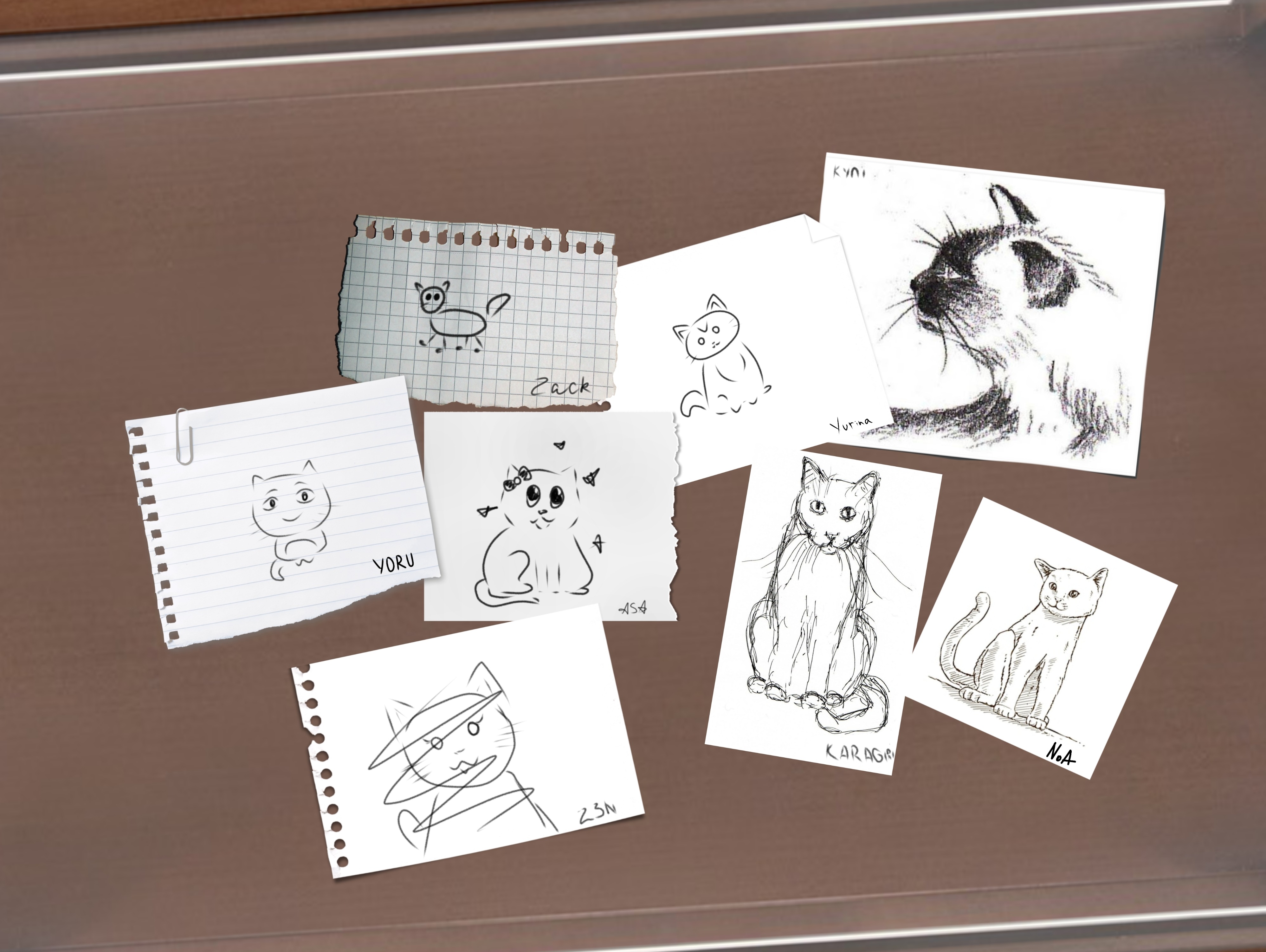 NOA: вот, выбор не особо большой, да и бумаги не много, только всякие обрывки. Эй, KYՈI, что будем рисовать? Ну?