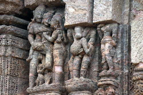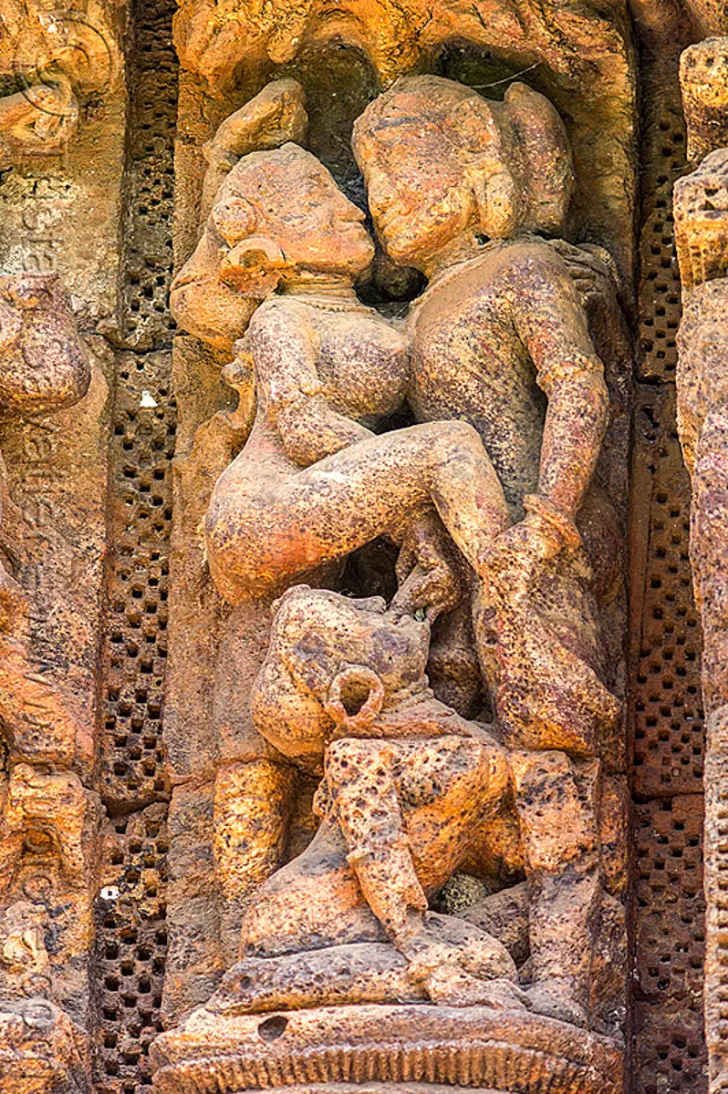 Stone sculpture in ancient erotic Candi Sukuh-Hindu Temple on central Java, Indonesia Erotic act depicted in beautiful carved sculpture . Konark Sun Temple also known as the Black Pagoda ia a 13th-century Sun Temple at Konark, in Orissa .The entire
