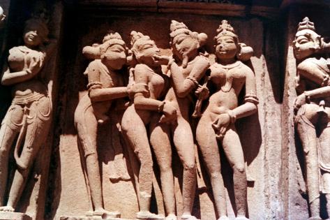In his history of the Kamasutra, Mc Connachie describes the amorous sculptures as "the apogee of erotic art", where the twisting, broad hipped and high breasted nymphs, fleshy apsaras and extravagantly interlocked maithunas run riot along the surface of stone .
