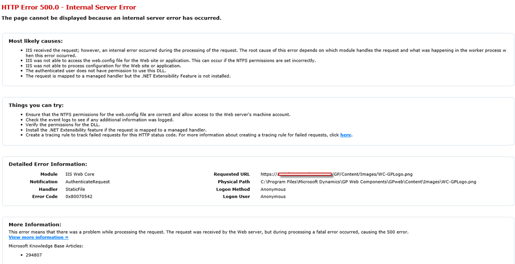 Error during processing the request