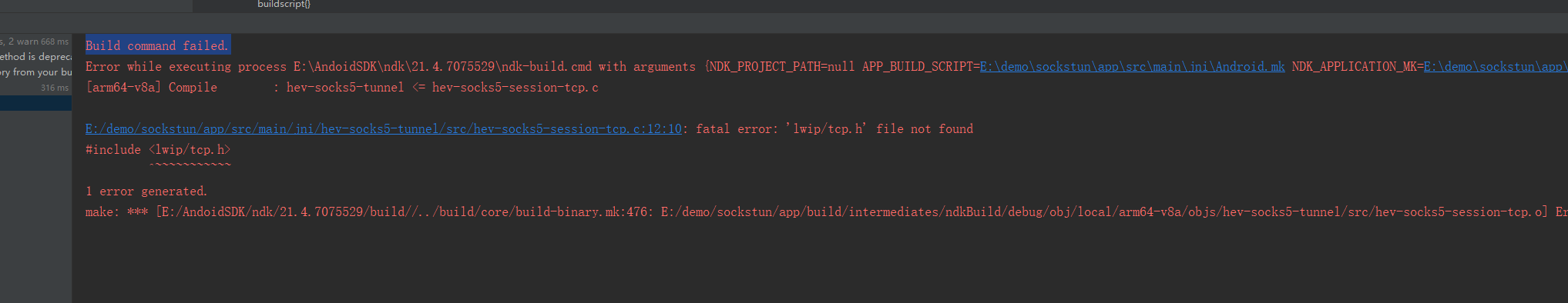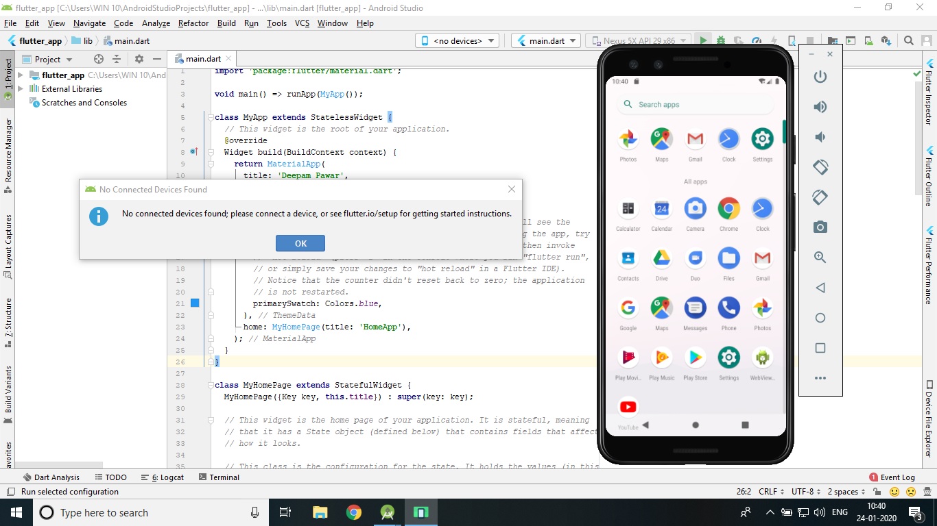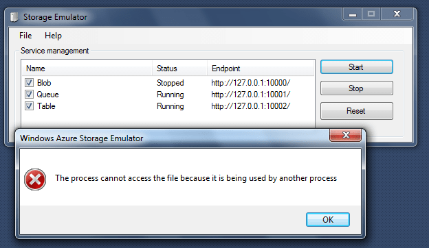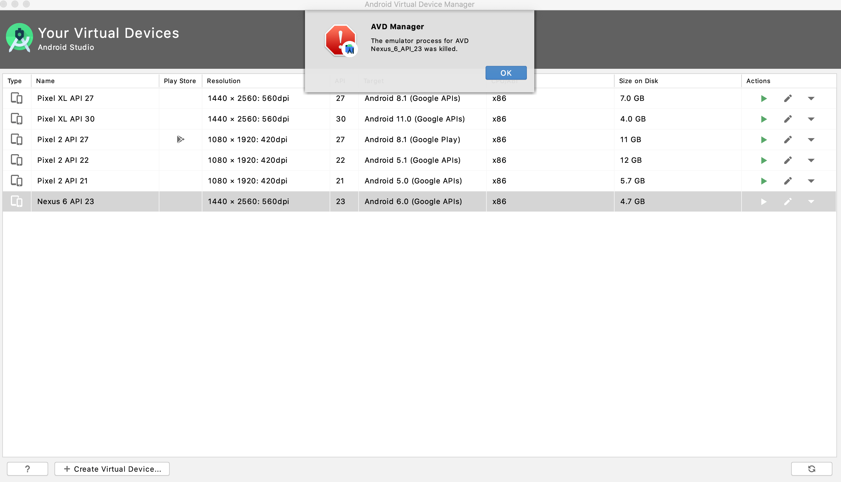 Error running app the emulator process
