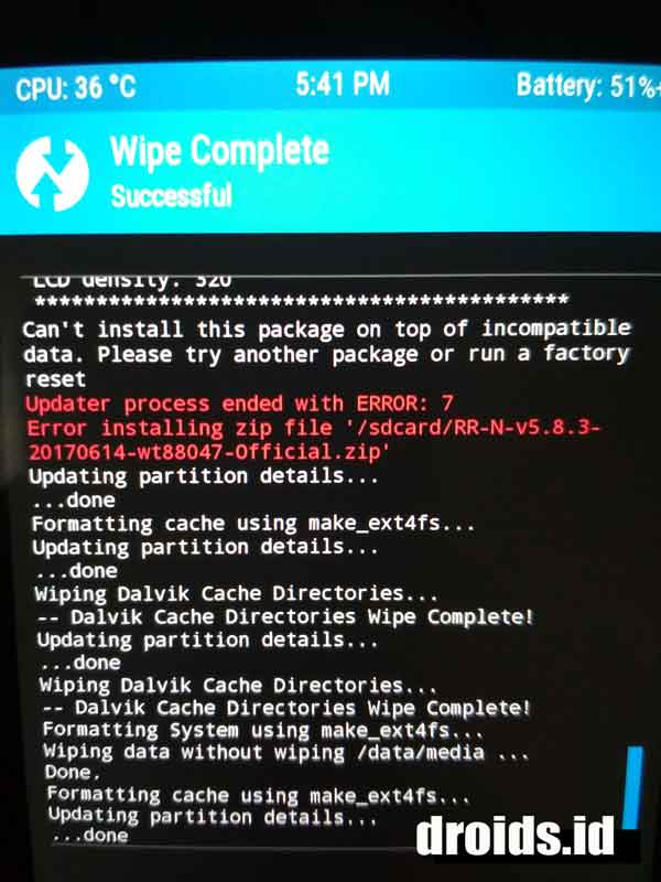 Error update aborted