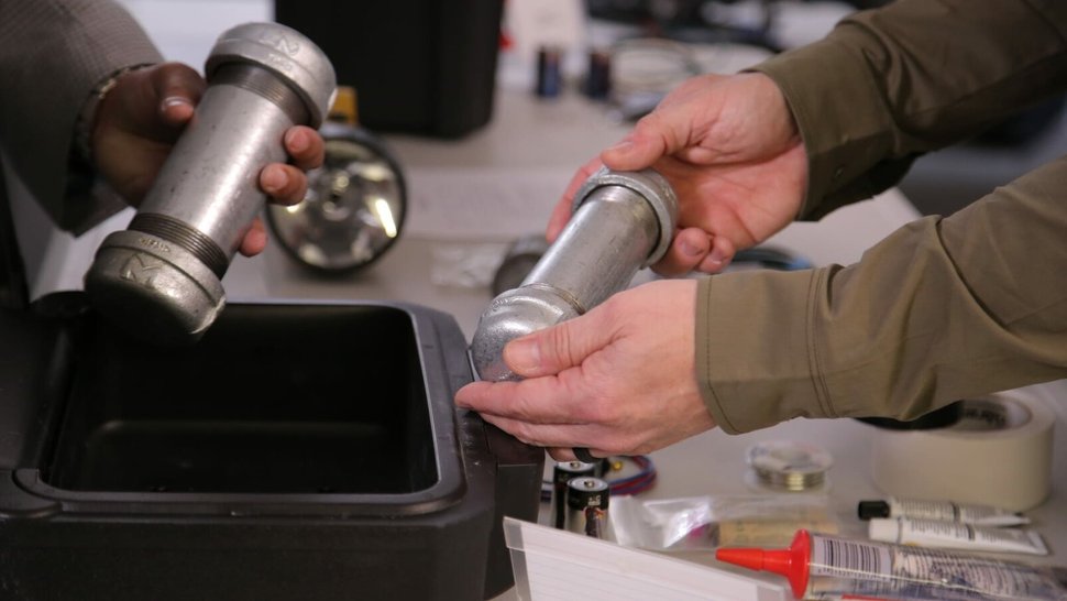 Herrin schlägt einen gefesselten Sklaven mit elektrischem Strom und fickt ihn mit