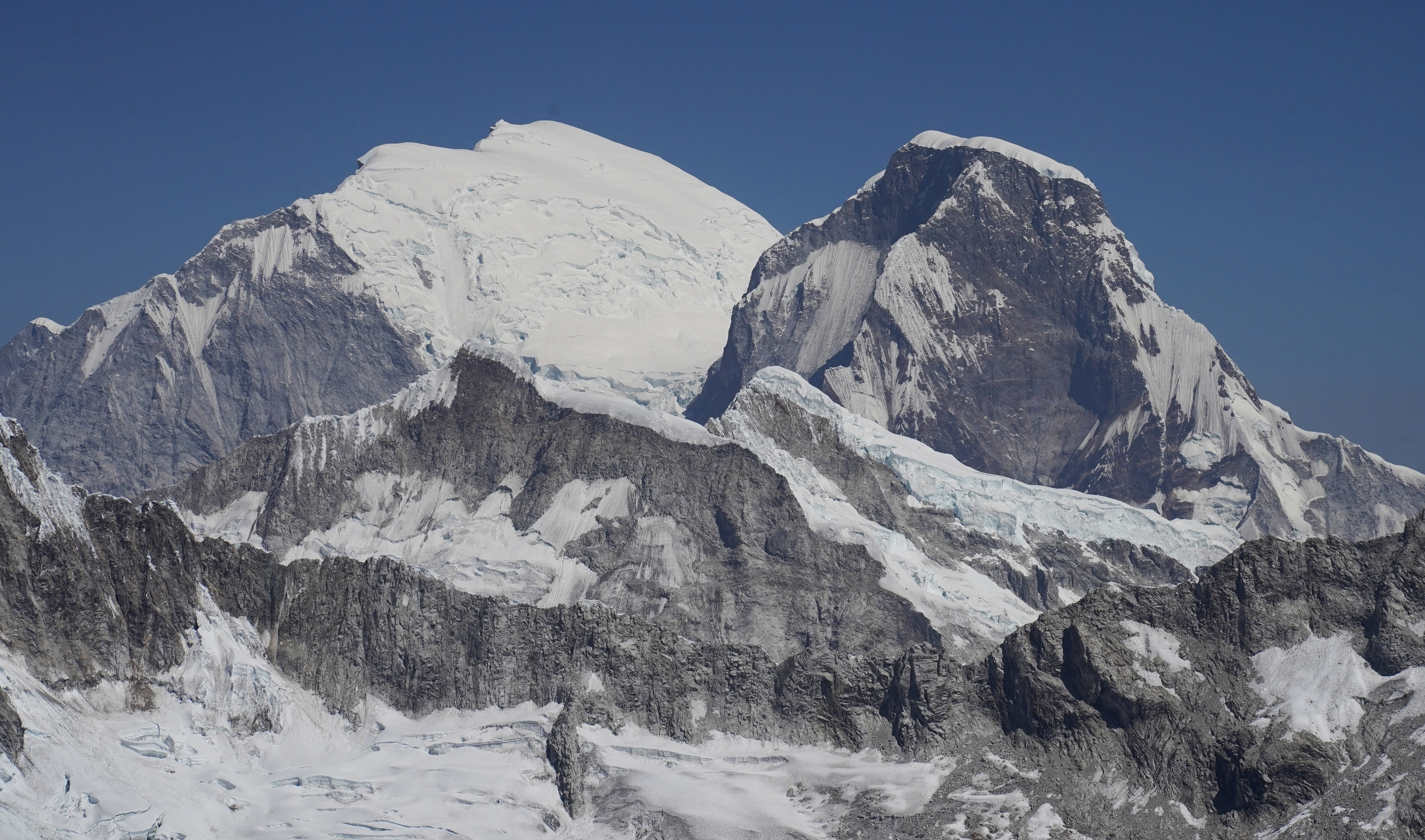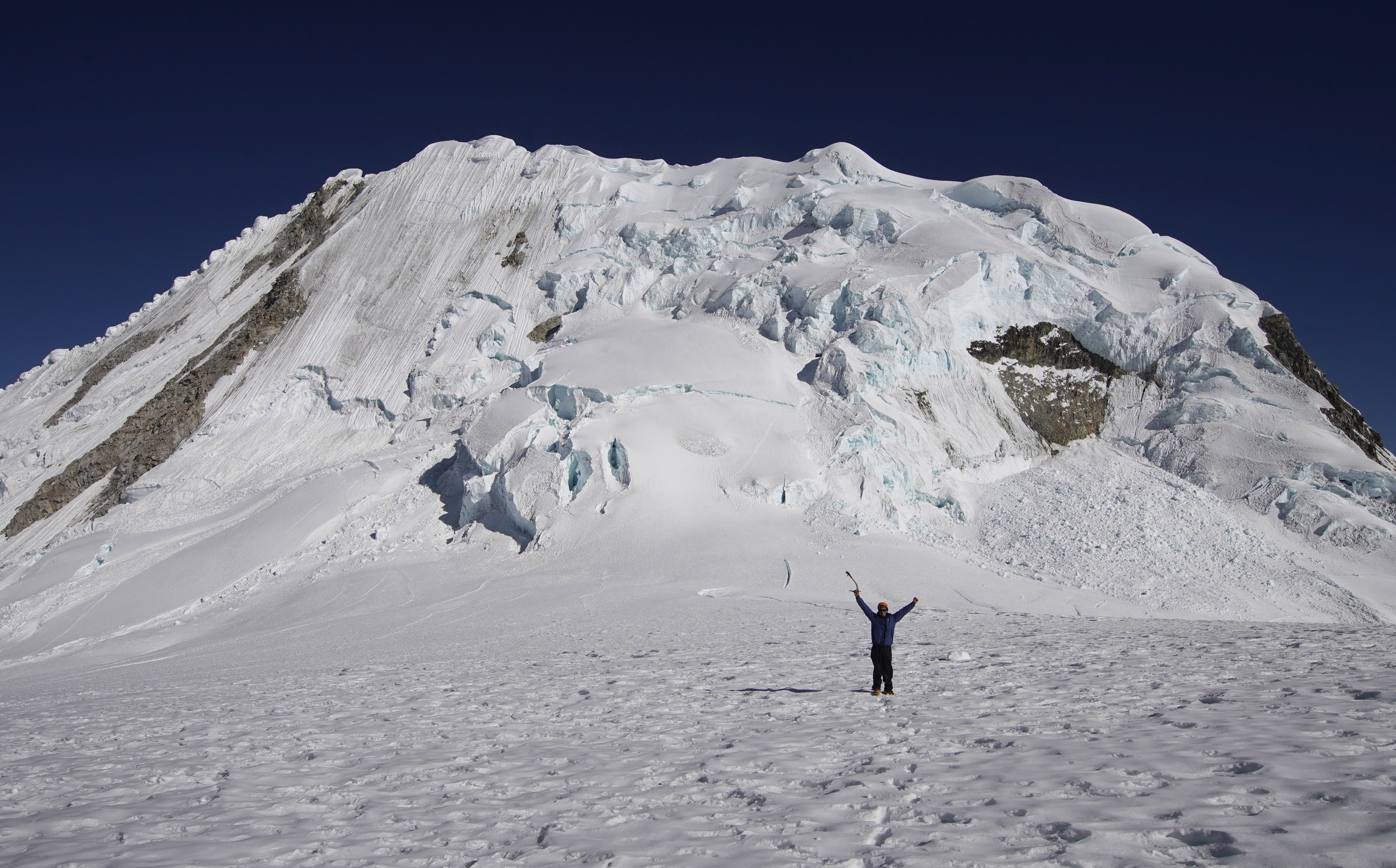 En nuestra ruta de aclimatación a Tocllaraju, se abrió una grieta gigante en la base del domo de la cumbre. La segunda grieta en Tocllaraju se abrió a 6100, justo debajo de la cumbre.