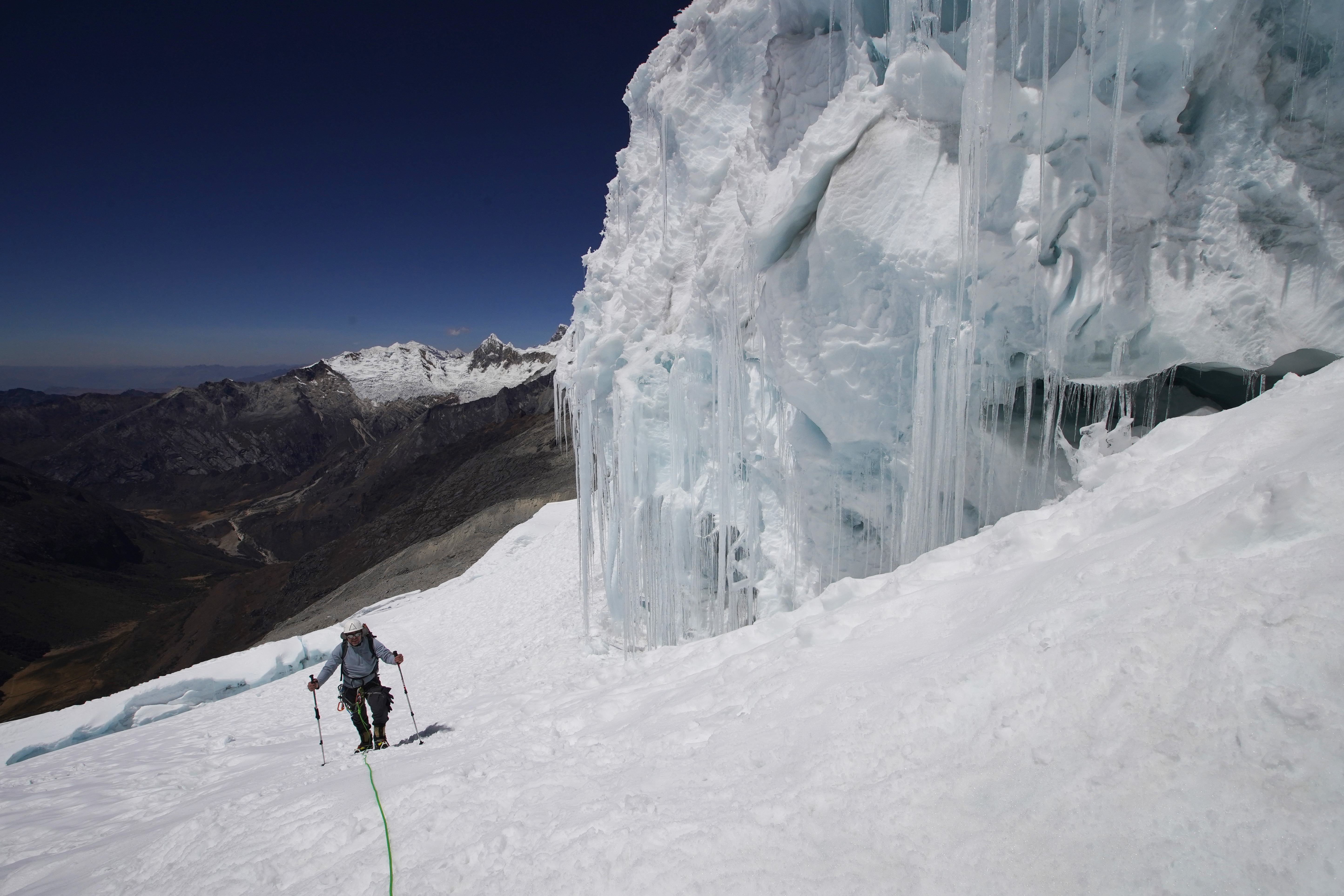 Quizás sea que con las grietas y la dudosa calidad de los puentes restantes esté asociada la principal dificultad y peligro de escalar la Cordillera Blanca en esta temporada.
