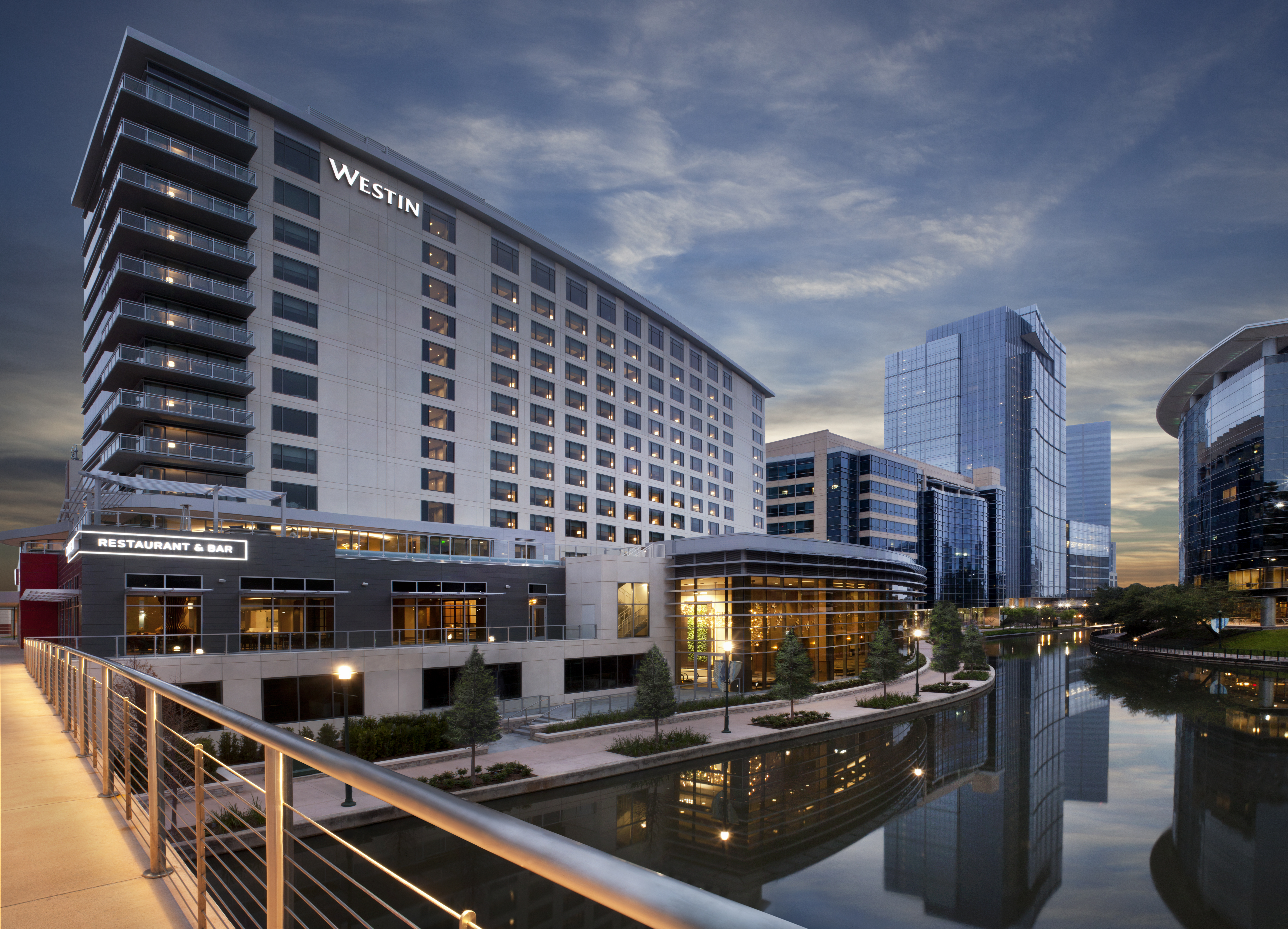 It continued to grow residentially and commercially as many companies were moving there. In addition to Chevron Phillips, Huntsman Corporation, Hewitt Associates, Lexicon Pharmaceuticals, Maersk, M&S Engineering and Woodforest National Bank have set up operations. The Town Center includes shopping and eating facilities as well as a waterway resembling the San Antonio River Walk.