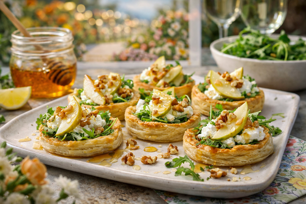 Галактический лембас школы ВолкаТарталетки с козьим сыром, грушей и медовой заправкой