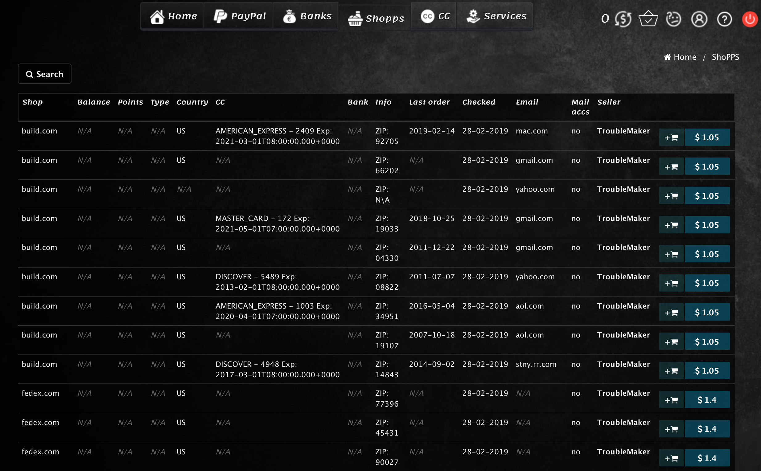 За номинальную комиссию от 10 до 15 процентов, вычитаемую из суммы каждой продажи в карман владельца магазина, продавцы могут загружать любое количество скомпрометированных учетных записей, которые, помимо электронной почты и пароля, часто могут включать в себя любую дополнительную информацию. Основной задачей продавца становится пополнение резерва продаваемых аккаунтов, в то время как вся поддержка клиентов, переводы и разрешение споров обрабатываются службой поддержки магазина.