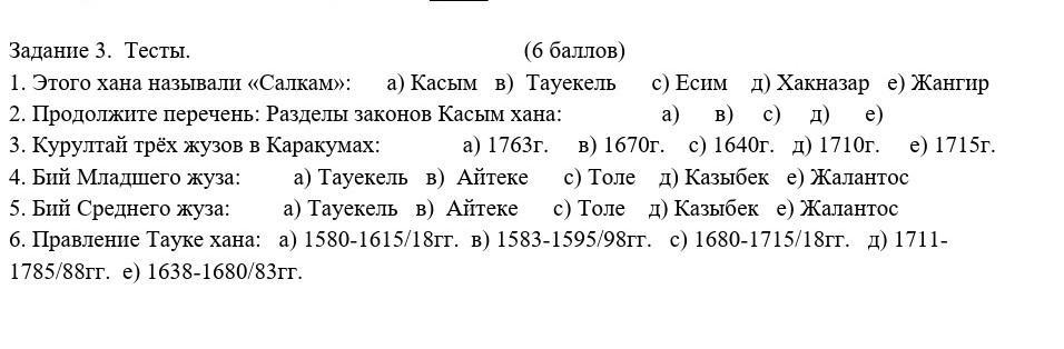 Есим хан задания