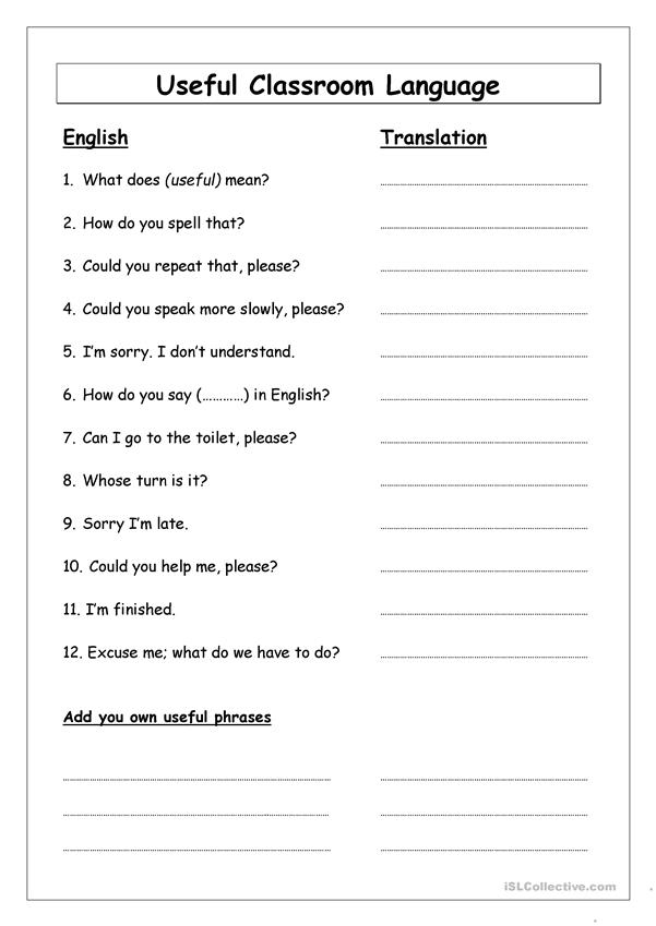 Esl language worksheets
