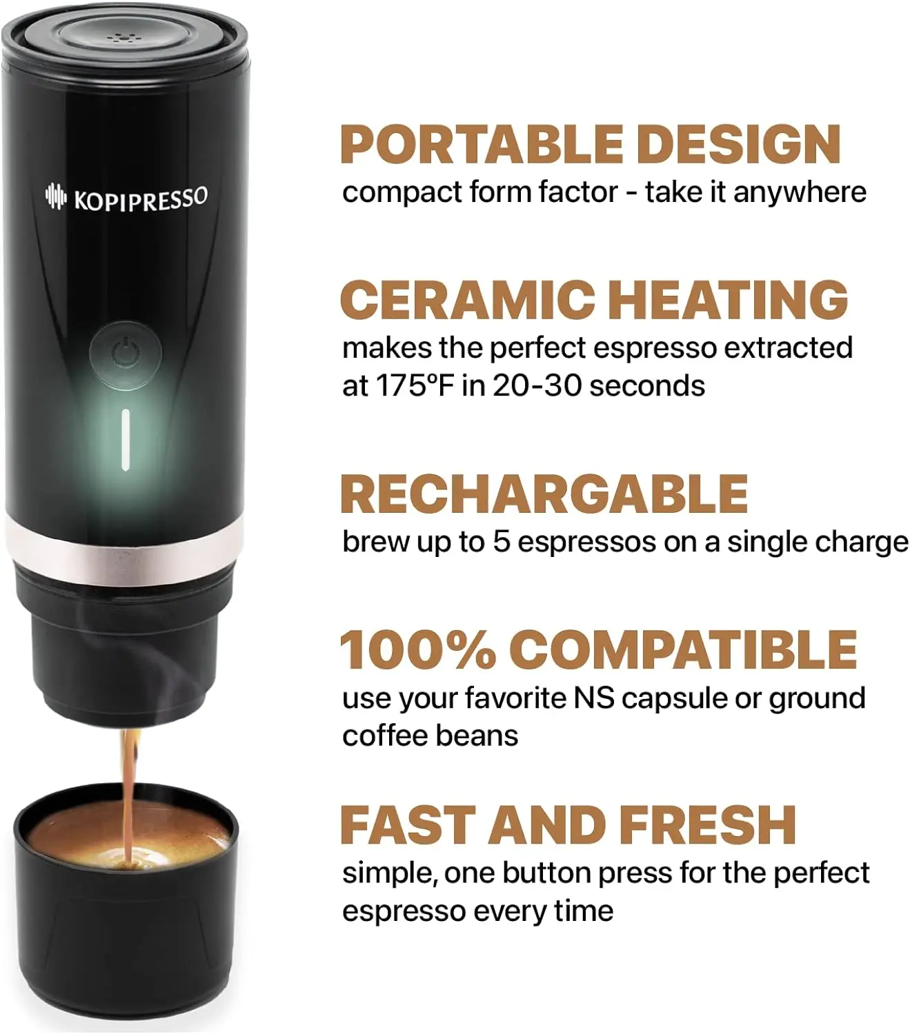 Espresso Bullet Max Fast Water Heating | Compact Portable Espresso Maker | Fast Ceramic Heating | (USB-C Powered Rechargeable) f - Купить с бесплатной доставкой