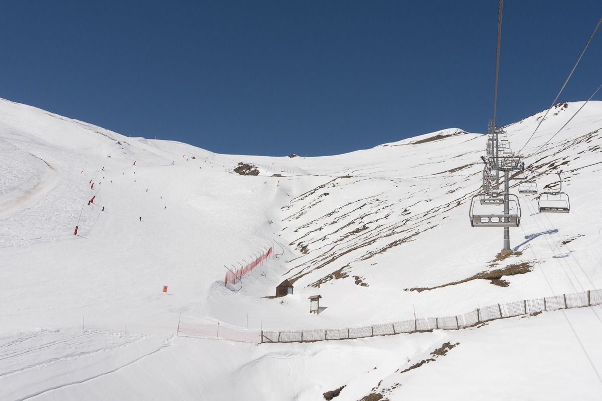 Como suele pasar en estas ocasiones las pistas rojas que están a la espalda de Tourette (bien orientadas al Norte) suelen salvar el día: bien de nieve y una nieve que ha aguantado muy bien la jornada (hace falta ver un mapa de verdad para apreciarlo y el plano de pistas oficial deforma bastante esta zona).