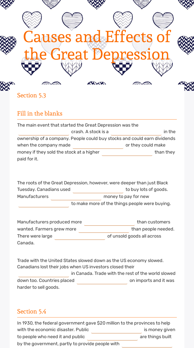 Cause And Effect Of The Great Depression Essay
