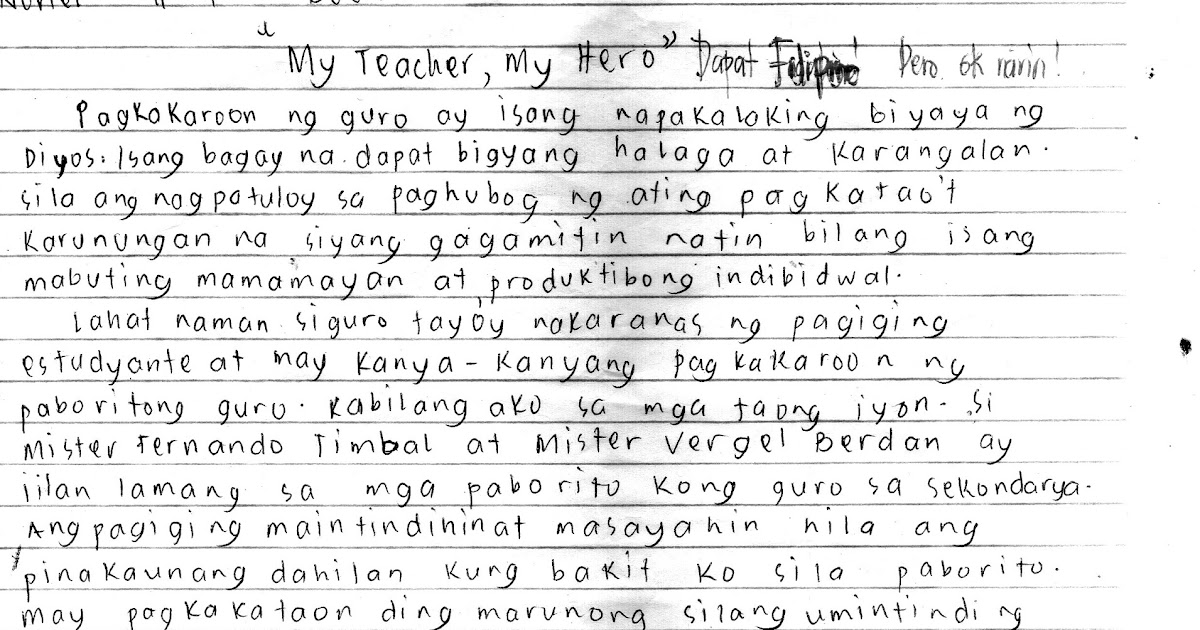 Essay About Teachers My Hero Tagalog