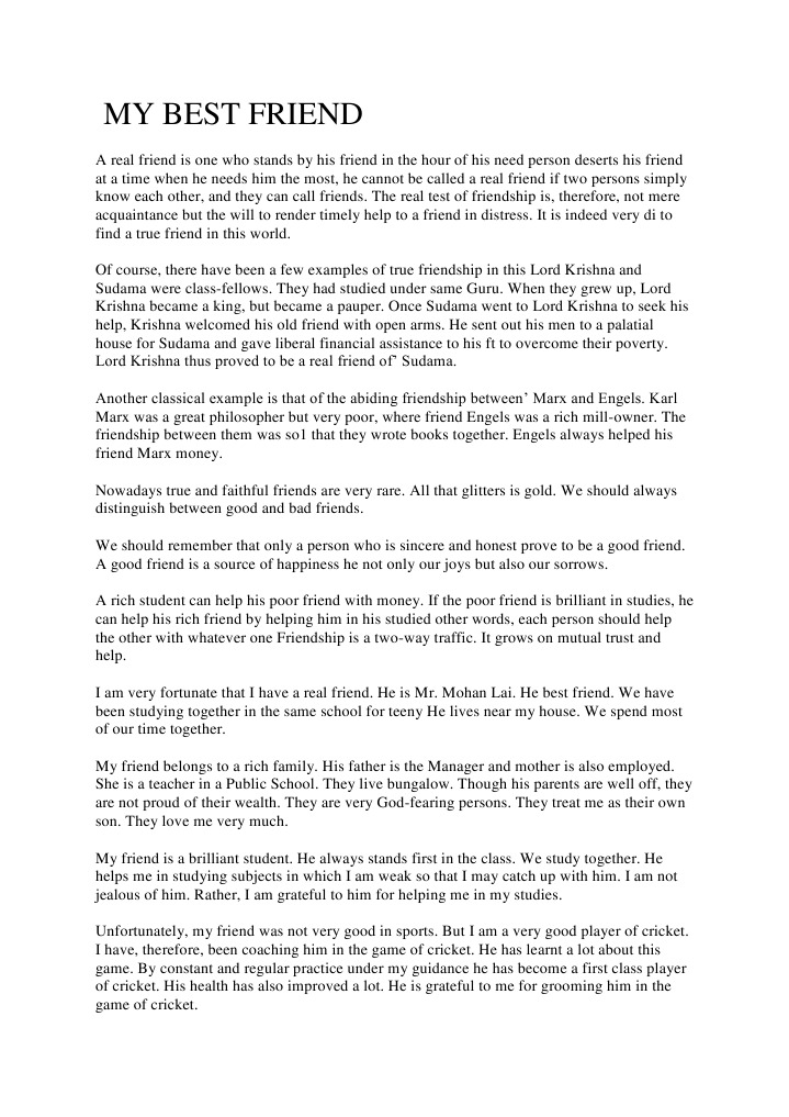 My Best Friend Essay Example - Free Essay Samples For All . . .