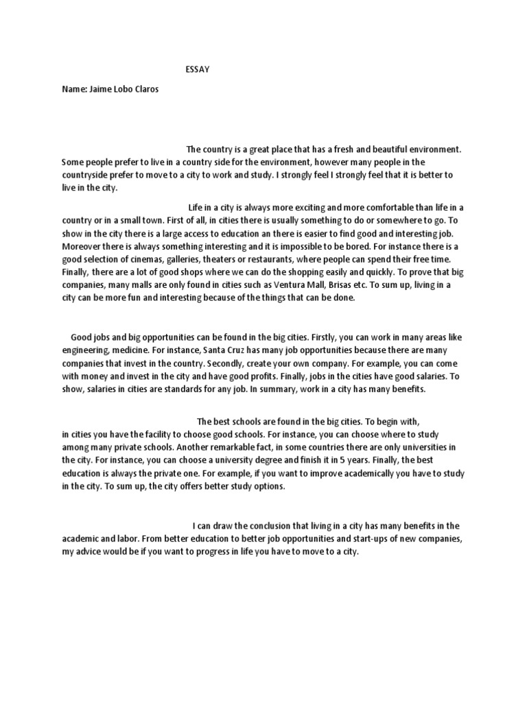 Advantages Of City Life Free Essay Example