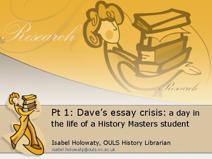 It is a mark of the melodramatic streak running through all Oxford Students that when we say 'Essay Crisis' , what we really mean is 'Essay' . I personally go through at least three essay crises a week, but I'll be damned if I'm going to stop acting like an enormous drama queen about the whole thing . [β¦]
