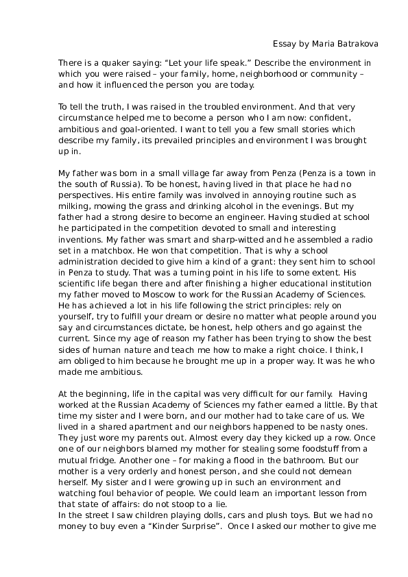 Essay About Myself Example