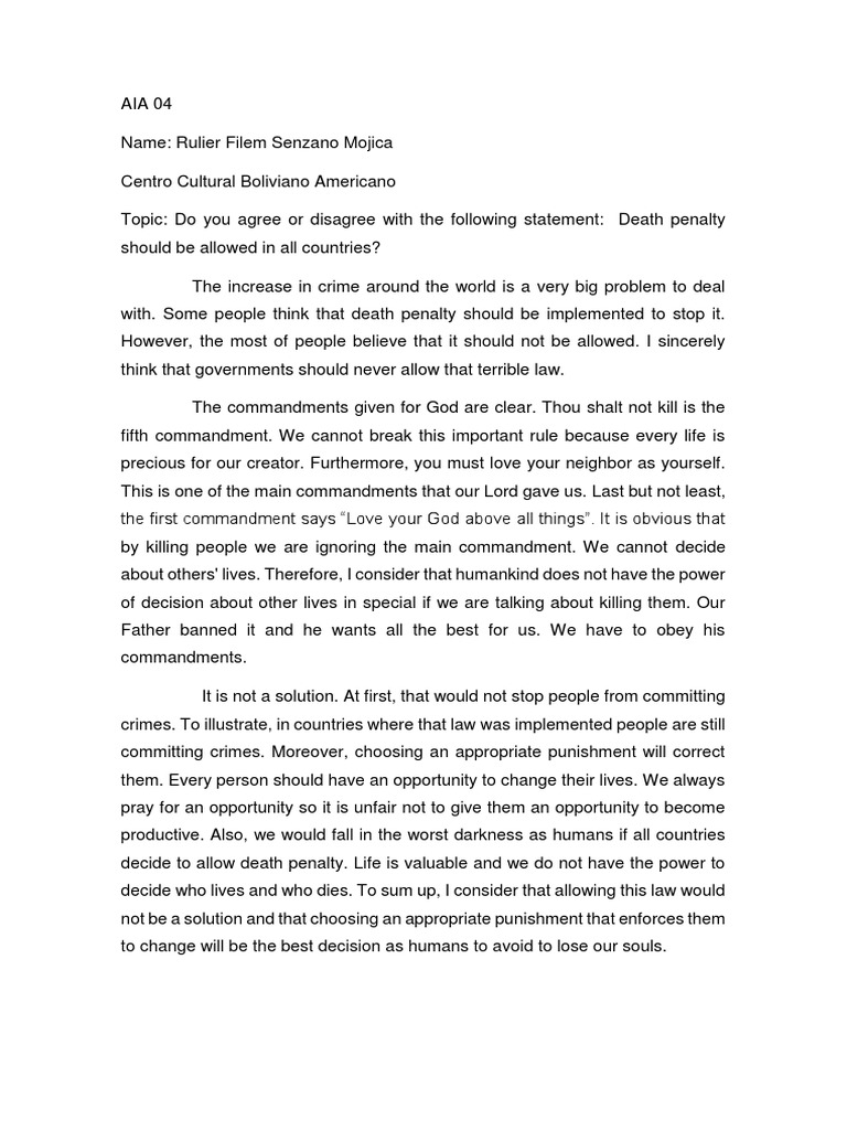 Argumentative Essays on Death Penalty . Examples of . . .