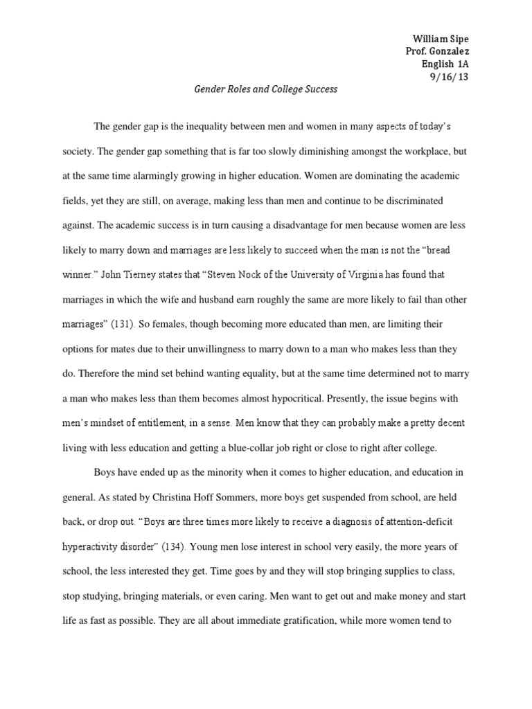 Persuasive Essay On Gender Equality | ipl .org