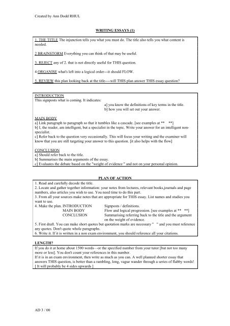Essay Planning: Guidelines and an Example Structure . . .