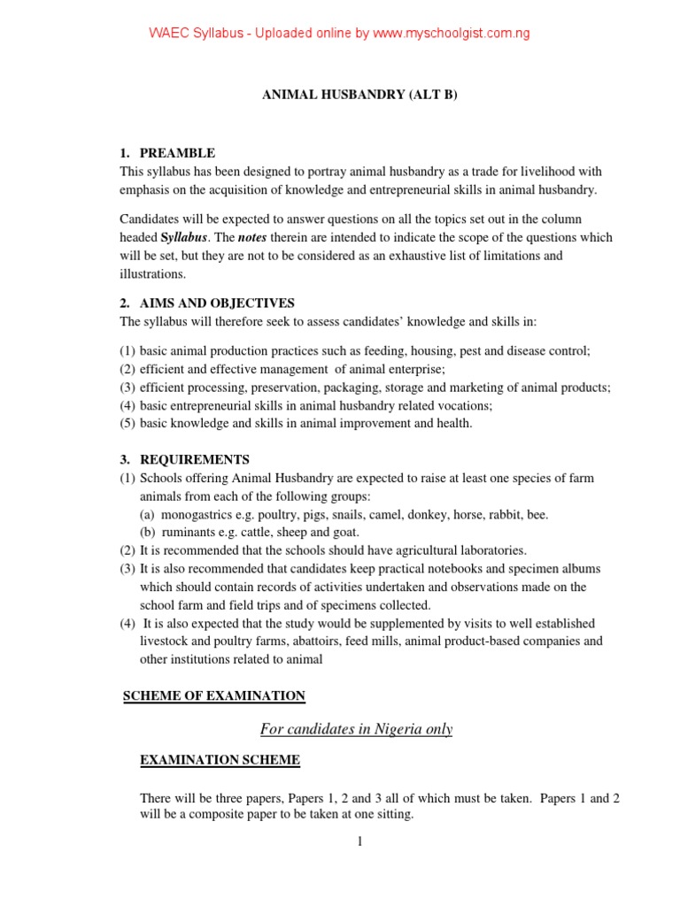 WAEC WAEC 2021 Animal Husbandry Essay and Objective Answers (19th August 2021) Thursday 19th August, 2021 . Animal Husbandry (Alternative B) 2 ( Essay ) - 2:00pm - 4:00pm .