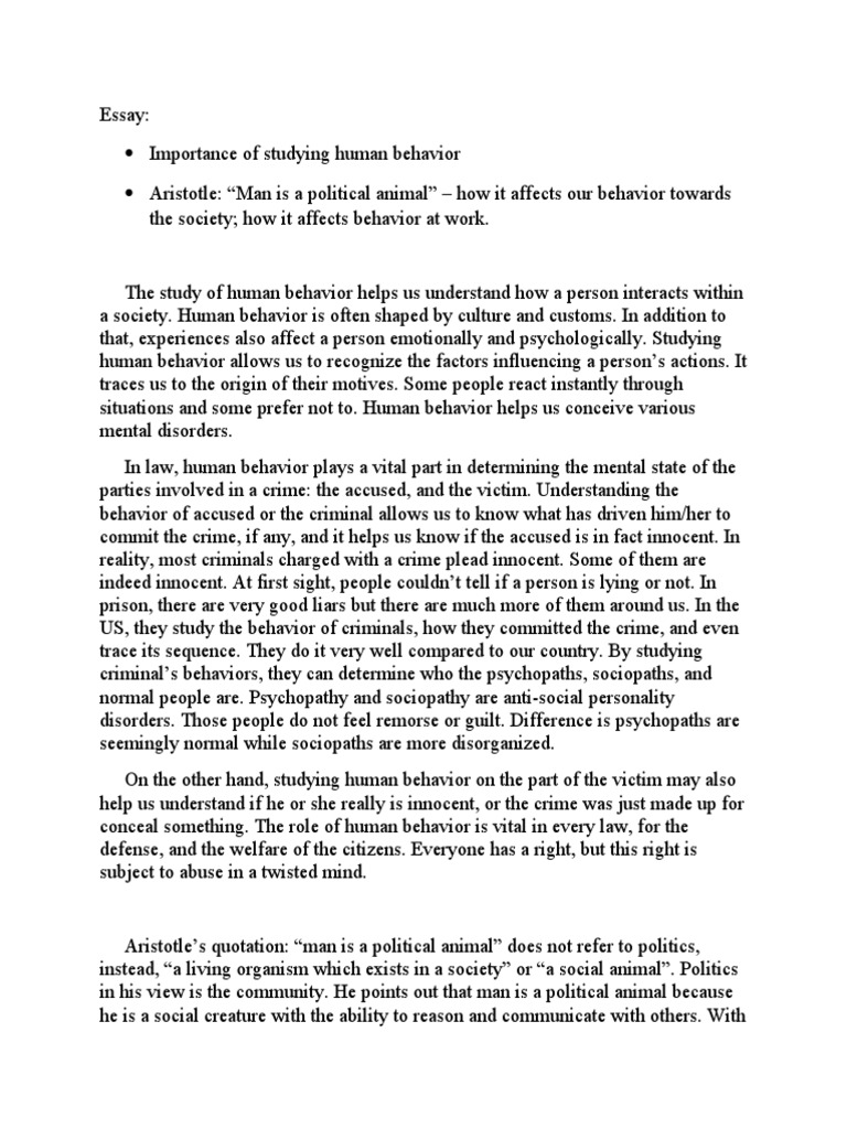 Human Behaviour Essay - Free Argumentative Essays For Students