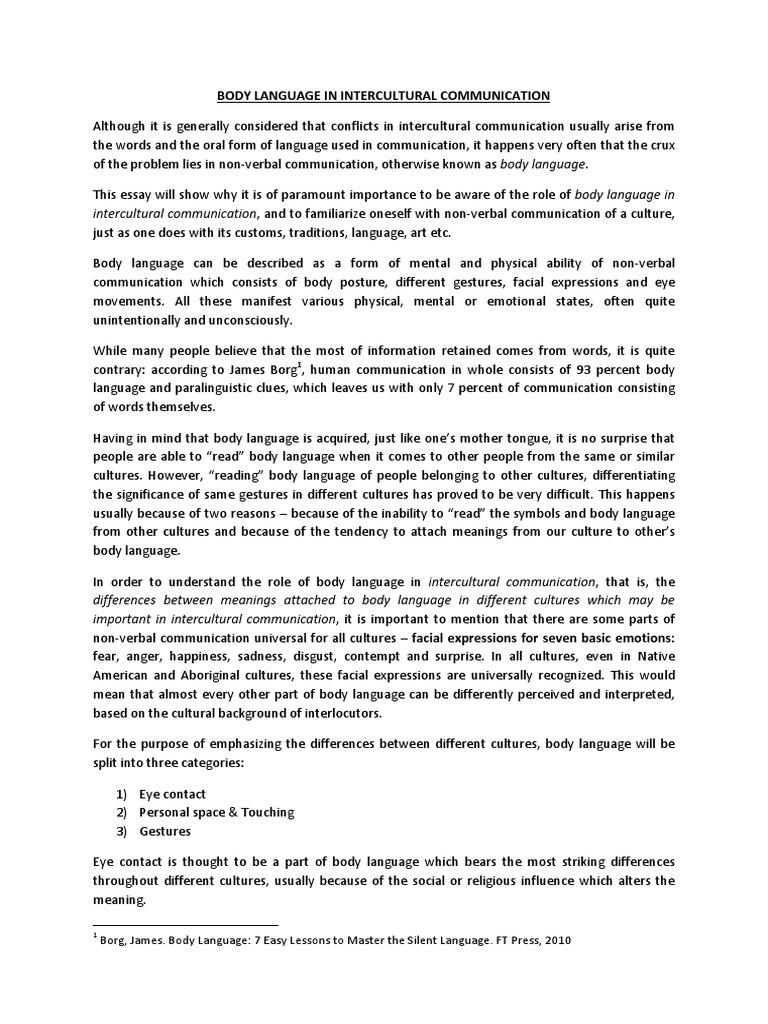 Body Language Essay | Bartleby