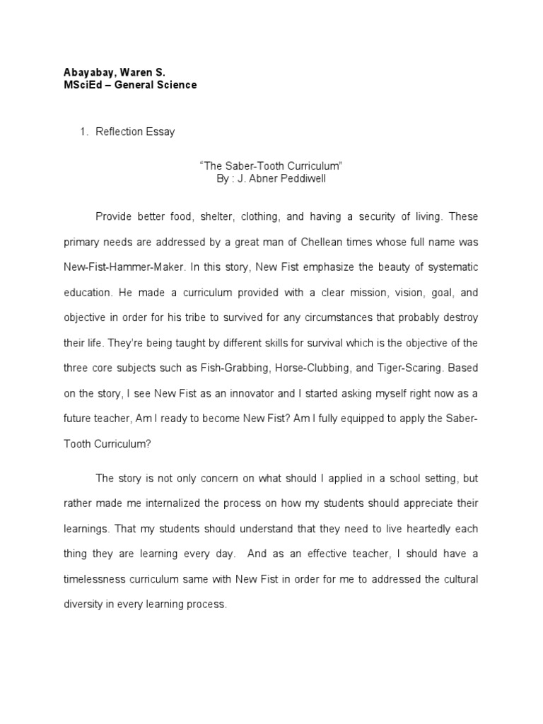 Curriculum Reflection Essay - 1091 Words | Cram