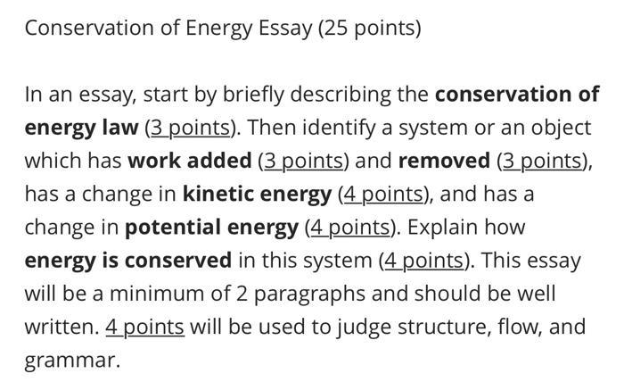 Energy Conservation ( Essay Sample) July 21, 2017 by admin Essay Samples, Free Essay Samples . Facebook 0 Twitter 0 Google+ 0 Viber WhatsApp . Energy Conservation . Energy is considered as the capacity of a physical system to perform or complete work whether through a mental or physical state . On the other hand, energy can also include the physical . . .