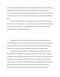 Essay about Mother Teresa - 1438 Words | Bartleby