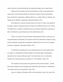 The article " Women in Politics : Still Searching for an Equal Voice" is quite informative about women's position in the modern Canadian society . It argues how the appearance and gender of politicians can impact the way people perceive them . Wicks and Lang-Dion emphasize the existence of the belief in the fact " politics is something men . . .