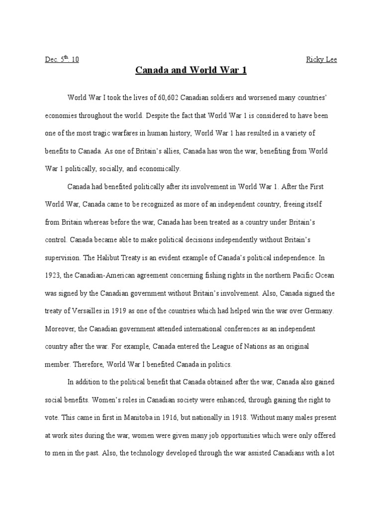 Essay about World War 1 - 1265 Words