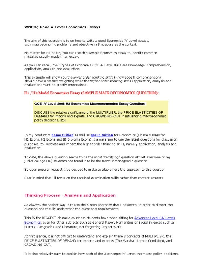 Essay Questions And Answers In Economics