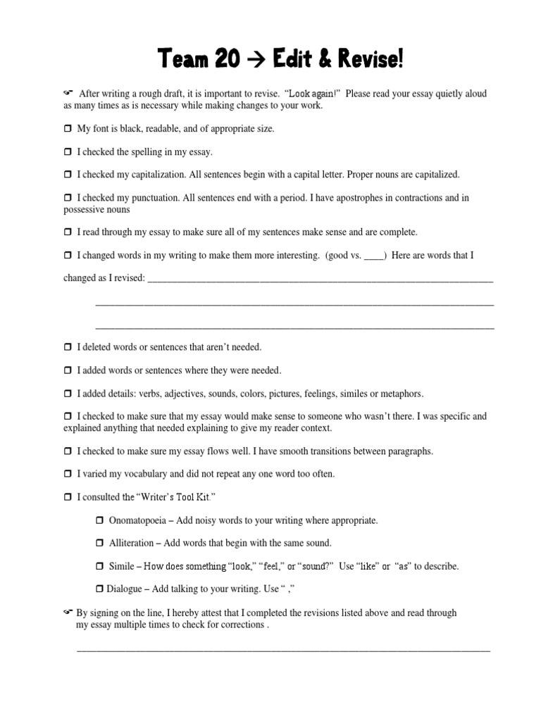 Essay Revision Checklist Worksheets & Teaching Resources | TpT