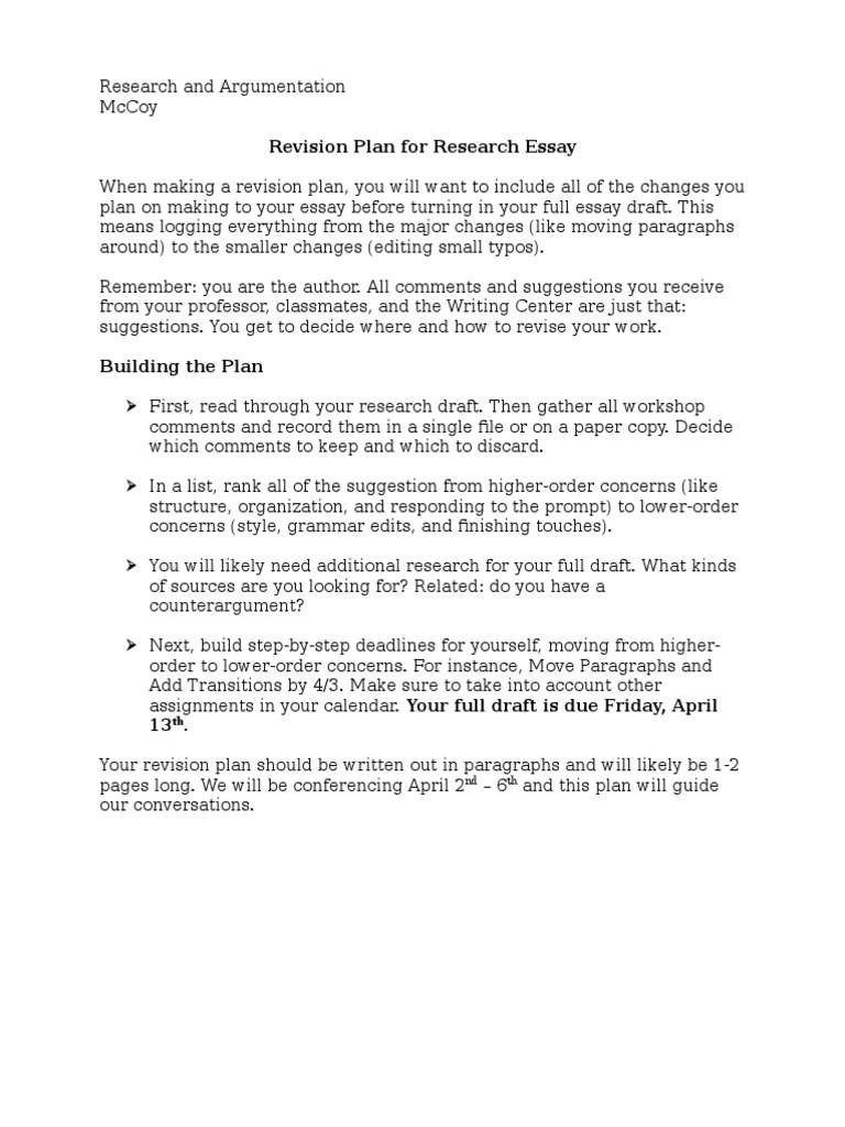 Essay Revision Plan