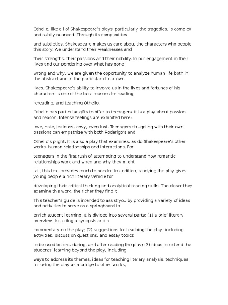Essay Topics Othello Shakespeare