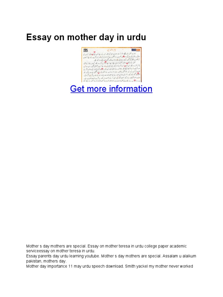 Below, we have provided the long and short Mother's day essays for essay writing competitions . Make use of these given simple and easily written essays on Mother's day and show your love on your love in words . Long Essay on Mothers Day in English (400 Words) Our mothers are like a security blanket to us because she saves us from all problems .