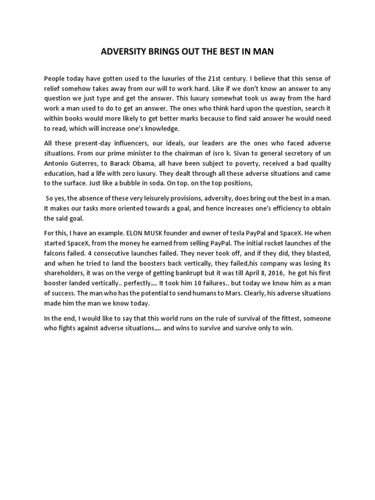 Adversity essay Free Essay Sample - New York Essays
