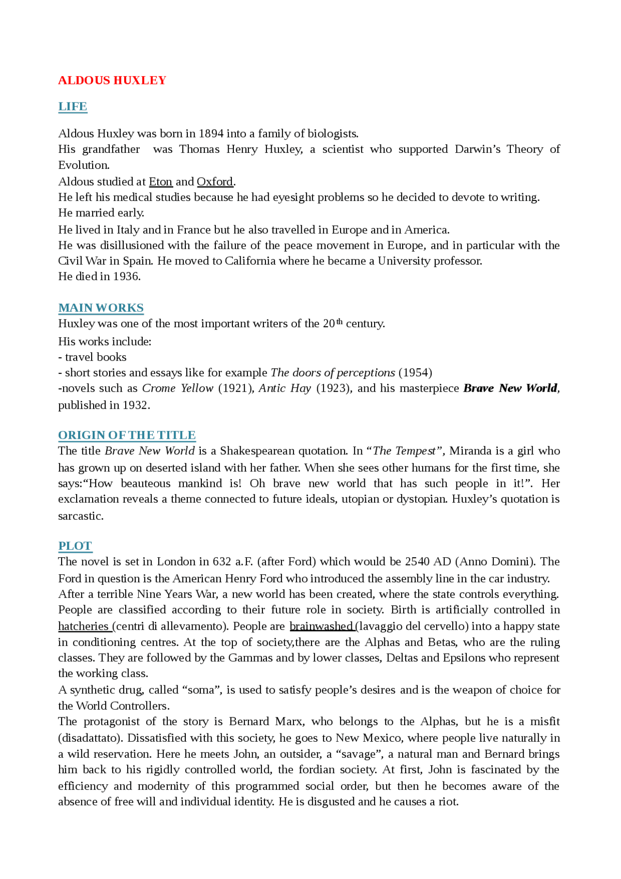 A Brave New World by Aldous Huxley | Literature essays . . .