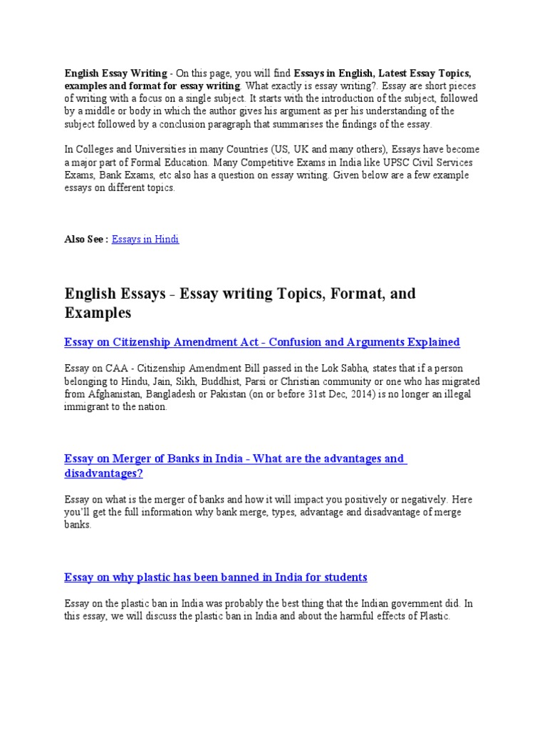 Essays On Different Topics In English