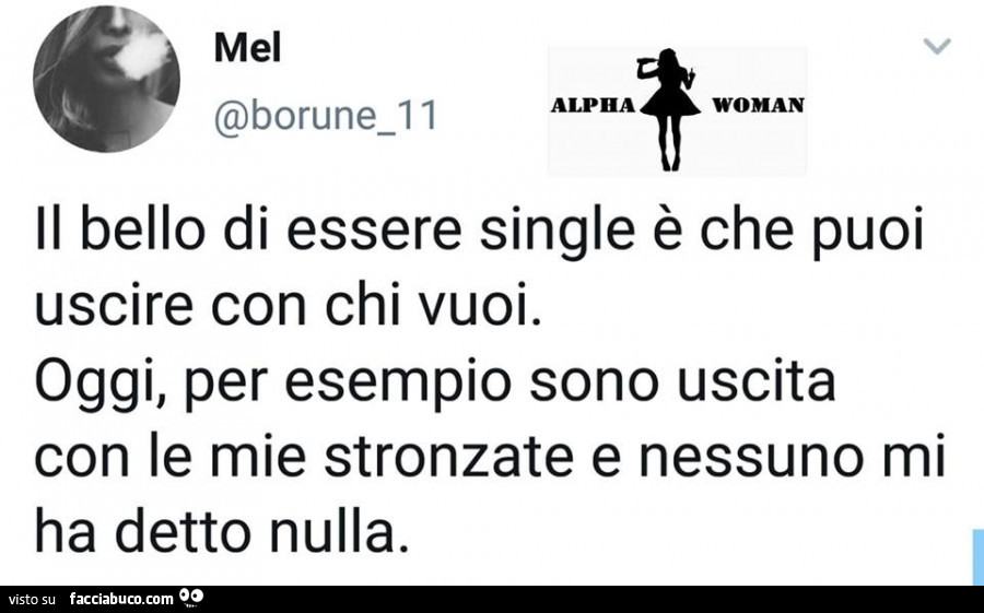 Essere single per te non è un problema . Anzi, hai imparato ad apprezzare i tuoi momenti di solitudine che sono impagabili, è grazie a loro se ti conosci così profondamente . 9 .