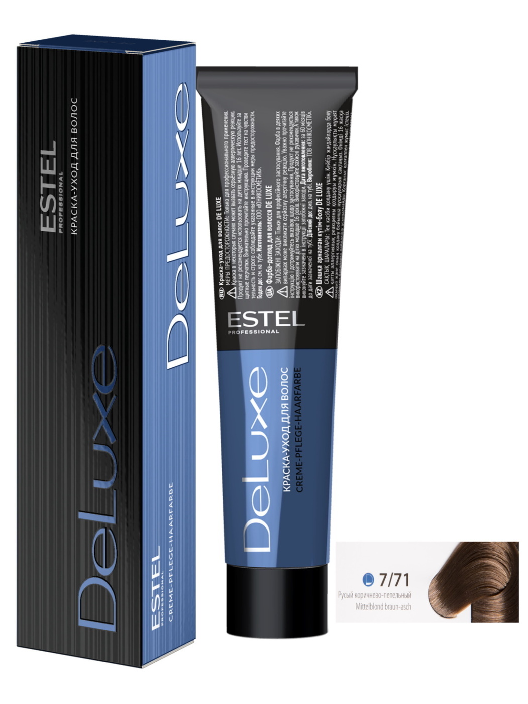 В отзыве речь пойдет о Профессиональной краске для волос Estel professional De Luxe в оттенке 7/71 Русый коричнево-пепельный.